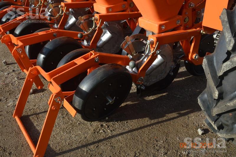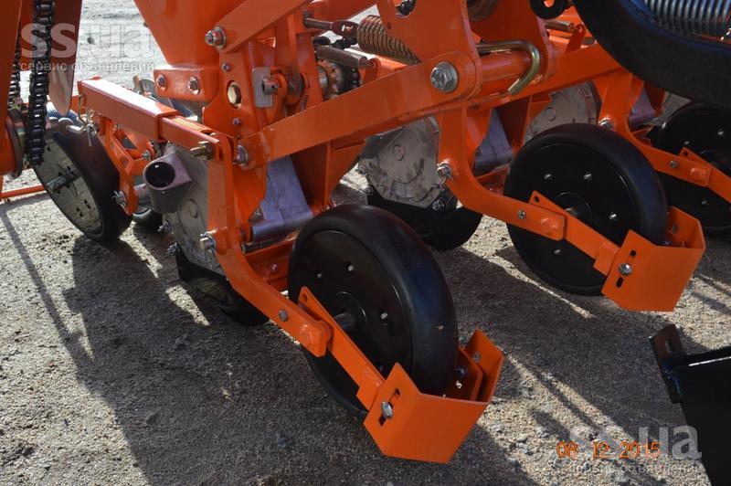 Весна 12 - универсальная пневматическая сеялка предназначенная для точного посева калиброванных, дражированных и обычных семян сахарной и кормовой свеклы, сои, кукурузы, подсолнечника, клещевины, сорго, кормовых бобов, фасоли и других семян, близких к ним по размерам с одновременным, раздельным от семян внесением гранулированных минеральных удобрений и прикатыванием почвы в рядках. Впереди рабочей секции установлен комкоотвод, позволяющий убрать из зоны посева комья и сухой слой почвы. Передний каток секции обеспечивает уплотнение и выравнивание почвы перед сошником для более качественного посева. В основном исполнении сеялка выпускается с комплектом дисков для высева свеклы с сорока отверстиями диаметром 2, 2 мм. По отдельному заказу могут быть поставлены сошники для высева кукурузы и диски для высева других культур. На сеялке Весна 12 установлен штатный сошник для высева семян свеклы. Для быстрого удаления семян из камеры высевающего аппарата предусмотрен разгрузочный люк. На заказ сеялки комплектуются транспортным устройством, что позволяет перемещать ее по дорогам общего назначения. Посевную секцию оснастили 2-х контурным приводом новой конструкции. Винтовое регулирование заглубления посевной секции снижает трудоемкость регулировки секции. V-образный каток обеспечивает подтягивание влаги в зону высева, придавливание семян к почве, оставляя при этом неуплотненный слой над семенем, что способствует быстрому прорастанию.