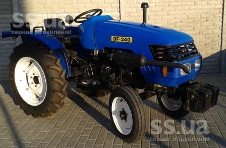 Представляем трактор ДонгФенг-240. Это заднеприводный трактор с 3-х цилиндровым дизелем жидкостного охлаждения мощностью 24 л. с. Передняя ось раздвижная и регулируется от 980 до 1380 мм. Дорожный просвет 40 см, радиус разворота 2.4 м. Размер передних направляющих колёс 5-15. 00. Передние грузы 80 кг. На капоте есть отверстие для доступа к горловине радиатора.