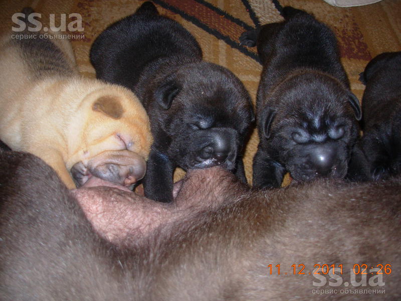 Шенки шарпея различного окраса родились 23. 11. 11 мальчики и одна девочка черная