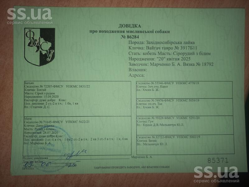 Продам кобелька Зсл, продегільмінтизований , провакцинований, док. ФМСУ. Київська обл.
