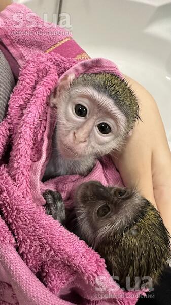Малюки верветки( сімейство зелених мартишек). Є хлопчик і є дівчинка. Вік 3 місяці.