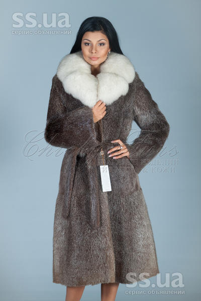 Шуба из меха нутрии с воротником и поясом. Шуба из меха нутрии с воротником и поясом. Размеры 40-60, мех - нутрия, цвет - бежевый, серый, длина 120 см.