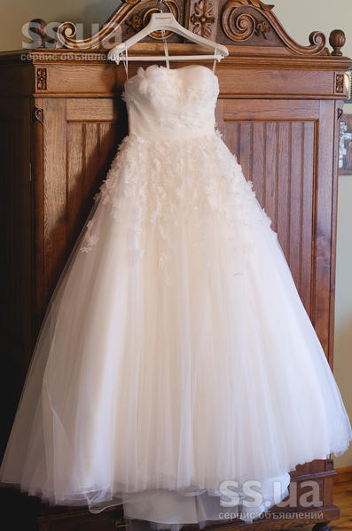 В ідеальному стані (після хімчистки), одягалось один раз. Купувала за 15 700 грн, продам за 8000 грн. Торг можливий. Причина продажу - щасливо вийшла заміж, вдруге не збираюсь :))