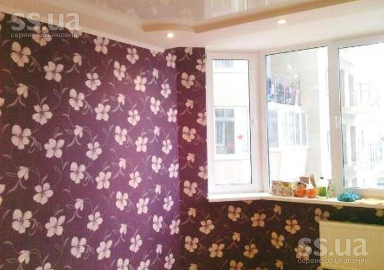 Поклейка шпалер Київ та передмістя Обклеювання шпалерами недорого, професійно, швидко. При необхідності - вирівнювання штукатуркою, шпаклівка. Фарбування стелі та стін. Монтаж стельових багетів. Укоси.
