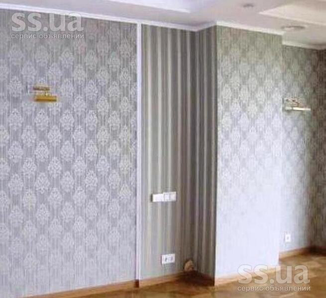Строительные работы,  Отделочные, внутренние работы Поклейка обоев, Фото