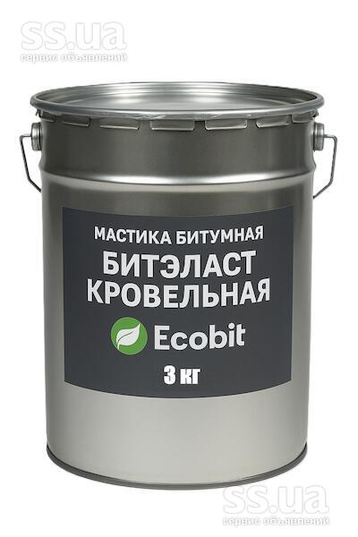 Мастика ведро 3 кг битумная Битэласт - Кровельный Ecobit Устройство новой кровли, ремонт старой (вместо рубероидно - битумного покрытия или в комбинации с ним), обмазочной гидроизоляции фундаментов, стен, для герметизации закрытых вертикальных и горизонтальных стыков наружных стен, заделка стыков рулонных изоляционных материалов