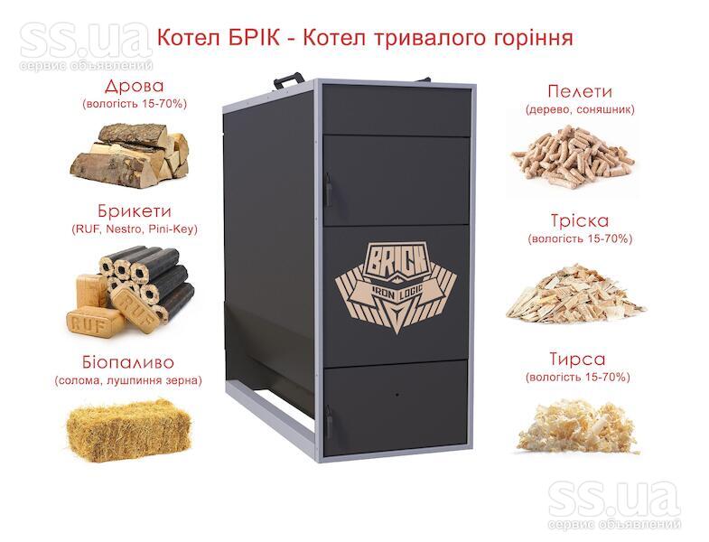 Котли Брік тривалого горіння на тирсі та відходах деревини будь-якої вологості.