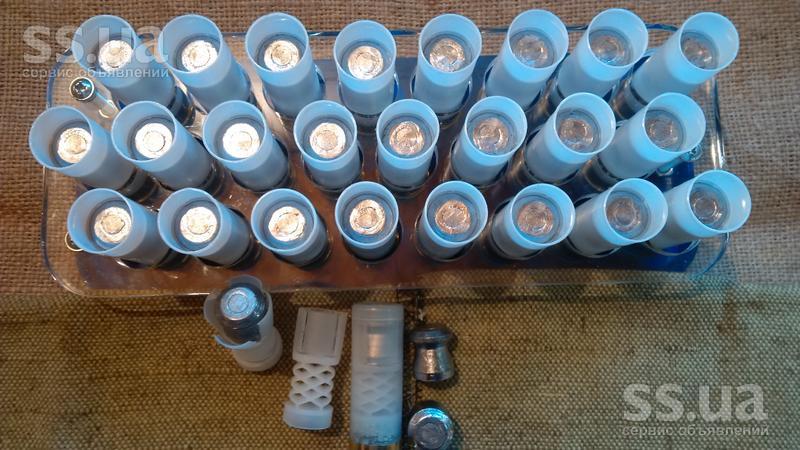 Продам патроны 12 калибр - самокрут. Составляющие: гильза импортная, новая, капсюлированная, порох Nobel Sport с согласованной картечью - заряд 9 картечин диаметр 8, 3 мм, вес заряда 30, 5гр. Цена патрона -15 грн. Пуля Лиман - подкалиберная 12К, вес 34 гр. Пуля Диаболо - 12К, вес 31 гр. Цена 15 грн. Ширинского-Шихматова 18грн. По желанию клиента могу зарядить любую пулю. Пуля Рубейкина - цена патрона 35 грн. Дробовые патроны, (с мелкой дробью) снаряд 32 гр. - цена 14 грн.
