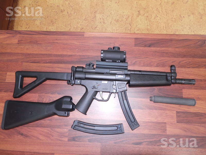 Полуавтоматический карабин калибра 22lr Gsg-5, версия с длинным стволом. Продажа согласно действующего законодательства через магазин. Настрел до 300 выстрелов, покупал новым. Находится в Киеве. В комплекте карабин, два приклада (откидной и стационарный) два магазина, планка под оптику, коллиматор, глушитель, Чехол для переноски и хранения