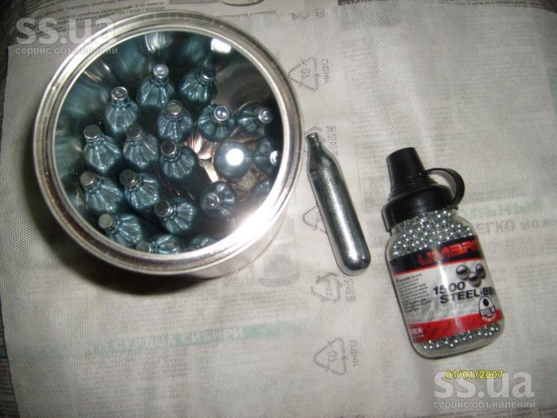 Продам пневматический пистолет ИЖмех Байкал Мр-654К б/у в отличном рабочем состоянии в комплекте с запчастями : 1-2 пружины ствола, 2-рукоятка нового образца, 3-магазин( модернизированный airgunmod ), 4-2 пружины подавателя шариков, 5-подаватель шариков, 6- 3 потайных поджимных винта баллона, 7- 2 обтюратора, 8- 4 пружины клапана, 9- 3 клапана, 10- 3 седла клапана, 11-боевая пружина, 12- 2 пружины подавателя шариков, 13-чехол для обоймы кожаный на ремень. Оба магазина переделаны под 15 шариков. При условии покупки комплекта могу предложить 20 баллонов CO2(по 12 гр шт) и банку оцинкованных шариков Umarex(1500 шт) за 150гр, есть открытая но полная банка омеднённых шариков Crosman(1500 шт) за 120гр, набор ершей для чистки ствола 4, 5мм. за100 гр.