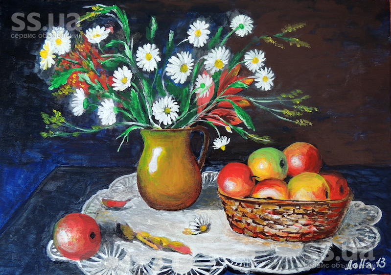 Продам картину голландский натюрморт"Ромашки", картина в деревянной позолоченой рамке, выполнина на холсте. Подойдет для кухни, столовой. Украшать картинами стены сейчас модно. будьте модными. Пересылка в другой город возможно, я уже успешно пересылала свои картины.