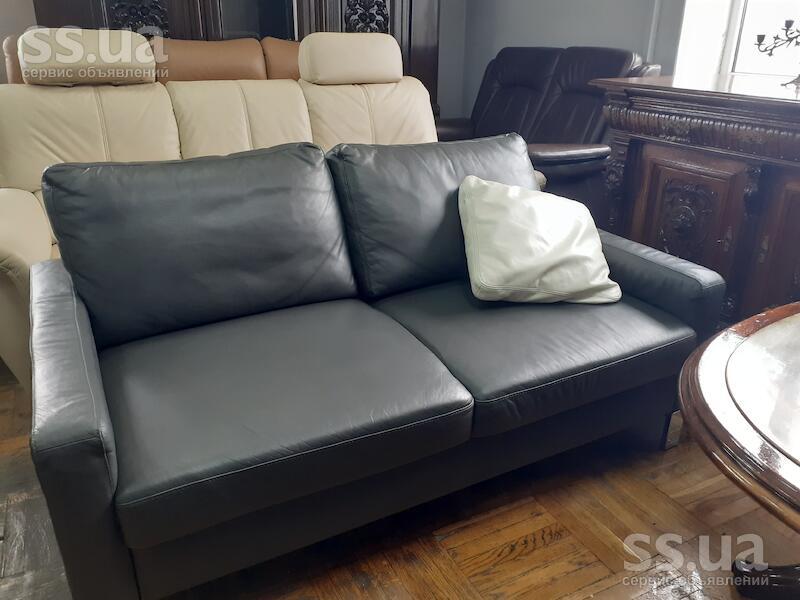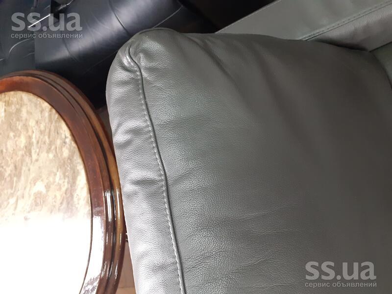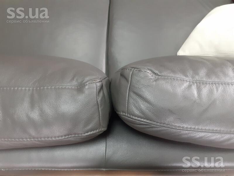 Пропоную Вашій увазі шкіряний диван в стилі модерн. На хромованих жалізних ніжках. Колір-сірий.