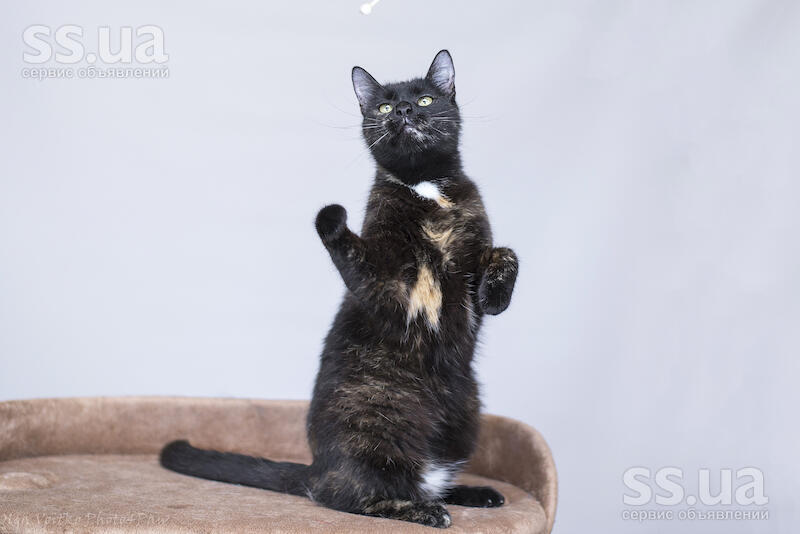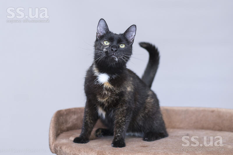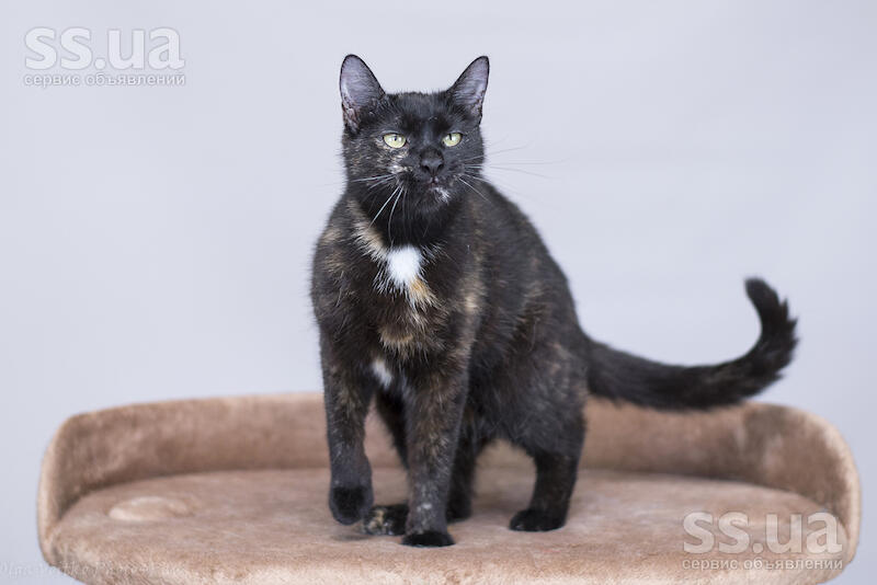 Невероятно милая кошечка с благородным взглядом и красивым черепаховым окрасом. У нее такой выразительный и глубокий взгляд, что кажется, будто ее глаза устремили взор в твою душу. Очень аккуратная, ласковая и деликатная кошечка.