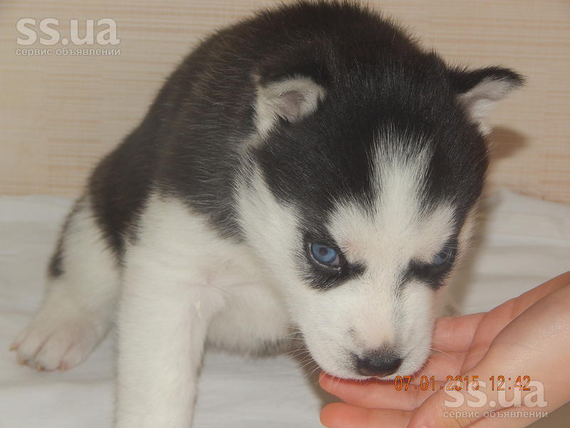 Продам щенков сибирской Хаски: 2-а мальчика (цвет светло-коричневый с белым) и 2-е девочки (цвет светло-коричневый и черно-белый). Щенки находятся в г. Бердянске Запорожской обл. , документы КСУ, прививка.