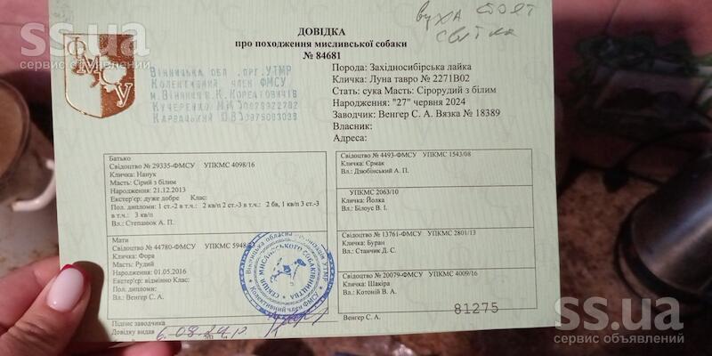 Продаю западно-сибірську лайку з документами гарно активна запитання останні по телефоні