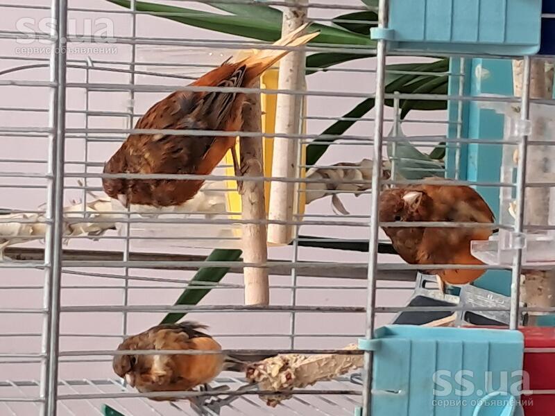 Мальчики кенары поющие, очень красиво поют. Возраст 6 месяцев. Красивые расцветки, коричнево оранжевые с длинными хвостиками. Игривые, веселые, кушают хорошо. Будут радовать вас и ваших детей.