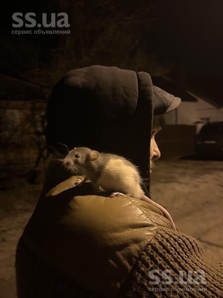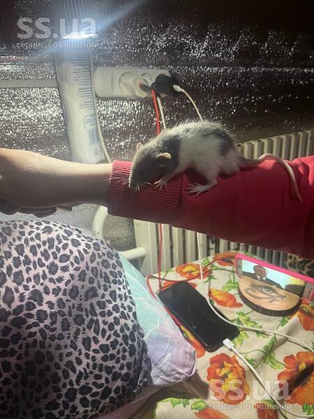Продаю крысу мальчик дамбо, окрас чёрный капюшон, 5 месяцев, живёт у нас пару месяцев, но так как у нас собаки йорки, они стали на него охотится, так как ему нужно гулять по квартире, опасаемся за его безопасность, надеемся что он найдёт такую же любящую семью, цена чисто символическая 150 грн.