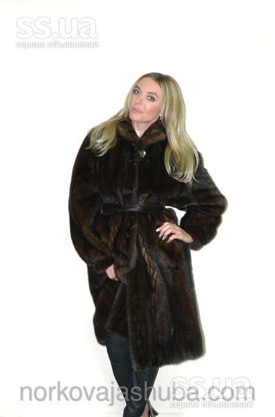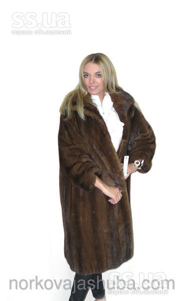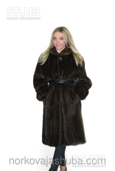 Осеннее обновление ассортимента норковых шуб в нашем магазине Фирменная норковая шуба коричневого (шоколадного) цвета классической модели. Данная модель шубки может подойти на размеры: 50 ― 52. Модель шубки – легкий клеш, без пояса. Рукава реглан, широкие, заужены манжетами, длина рукава ― стандартная. Воротник стойка, застегивается под горло на красивую пуговицу. Шуба застегивается на скрытые крючки с фиксаторами. Есть два кармана. Технология пошива изделия – роспуск, росшив. Норка ― канадская (ворс средней длинны, гладкий), разновидность махаон. Мех мягкий, блестящий, натуральный окрас; подпушек густой, мездра средней плотности. Подкладка – вискоза серого цвета, подол зашит (ручная работа). Маркировка дизайнера есть. Теплая, не маркая, шикарная норковая шуба для холодной зимы.