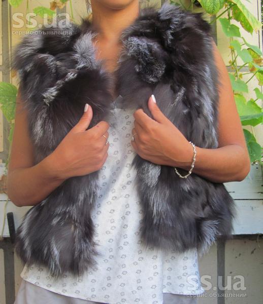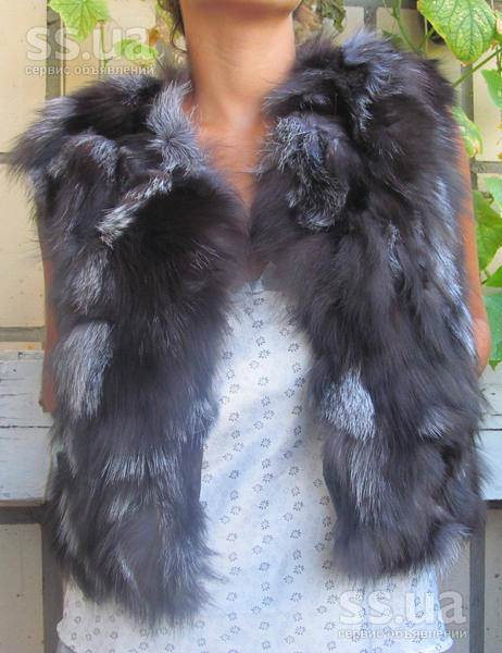 Меховой жилет из кусочков чернобурки.