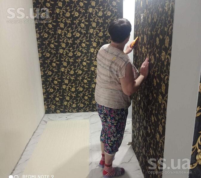 Поклейка обоев Теремки и другие районы Оклейка обоями разных видов. Беспесчанка (шпаклевка) под обои, под покраску. Покраска потолка и стен. Прфессионально, недорого. Стаж работы 17 лет.