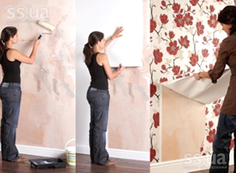 Будівельні роботи,  Оздоблювальні, внутрішні роботи Поклейка шпалер, Фото