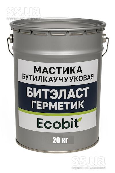 Мастика ведро 20, 0 кг бутилкаучуковая Битэласт - Герметик Ecobit Герметизации закрытых вертикальных и горизонтальных стыков наружных и внутренних стен, гидроизоляция полов (душевые, ванные комнаты, санузлы), заделка стыков рулонных изоляционных материалов, антикоррозионное покрытие газо- и водопроводных труб, металлоконструкций, днищ автомобилей и т. п