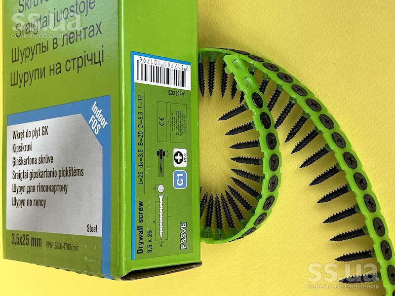 Саморіз на стрічці 521325 Essve для гіпсокартону по металу 3, 5 25 мм (1000 шт. ), фосфатовані, Швеція