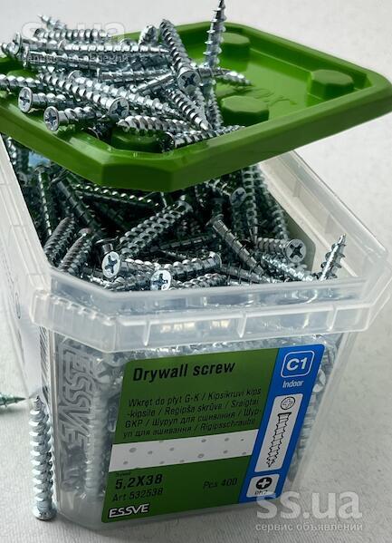 Гвинт для зшивання гіпсокартону essve 5, 2×38мм, ph2, оцинкований (400шт. ) арт. 532538