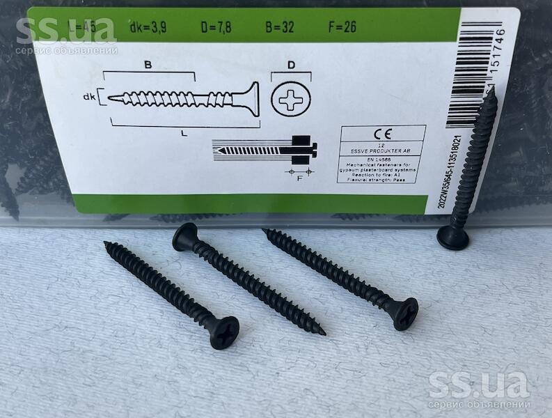 Саморіз Essve 550145- професійне рішення для монтажу "твердого" гіпсокартону. Завдяки спеціальній геометрії наконечника та комбінованому різьбленню, він легко входить як у дерев'яний каркас, так і в металевий профіль (товщиною до 0, 9 мм), не руйнуючи структуру плити.