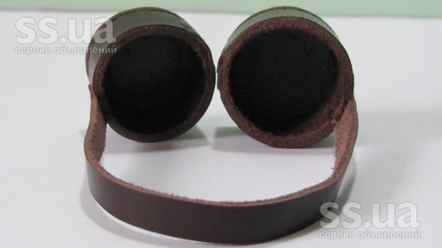 Два защитные колпачки изготовленные из натуральной кожи и соединены между собой ремешком.