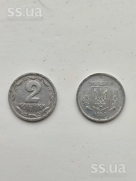 Продам дві монети України номіналом 2 копійки 1993 року випуску, стан задовільний.
