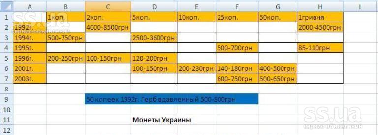Куплю монеты Украины, которые можно получит на сдачу, ниже есть таблица с годами и ценами. монеты СССР.