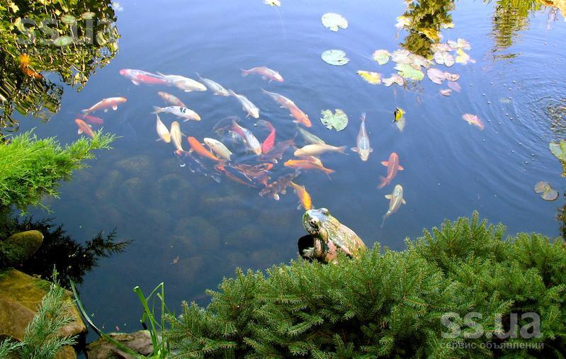 Услуги по размещению водоема с карпами кои.