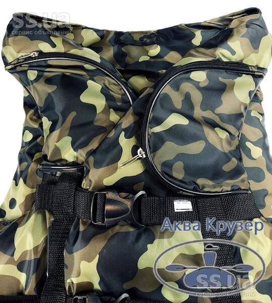 Страховочный жилет (спасательный жилет), 80-100 кг, с карманами, камуфляж.