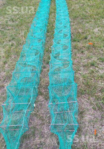 Продам свої нові раколовки 10 шт, матеріал корд, розмір 8 м. Каркас 26 40 см, вічко 18 мм, один ракозбірник, 21 - вхід. всі обшиті капроновою ниткою, нічого допрацьовувати не потрібно, готові до роботи