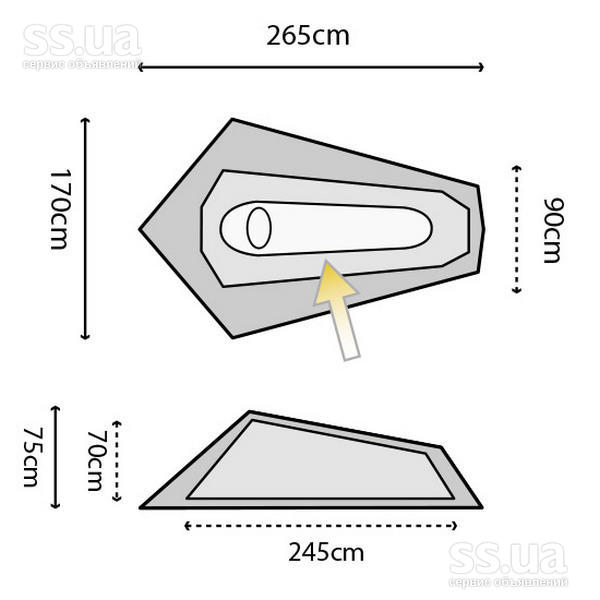 Большая выносливость от проливных дождей, эта двухслойная палатка с качественным полиуретановым покрытием внешнего тента способна защитить от дождя средней интенсивности не только хозяина, но и достаточно объемный рюкзак, обувь и другие личные вещи. Все это можно разместить либо в тамбуре, либо под навесом внешнего тента с обратной стороны от входа. Предварительно изогнутые дуги увеличивают внутреннее пространство палатки.