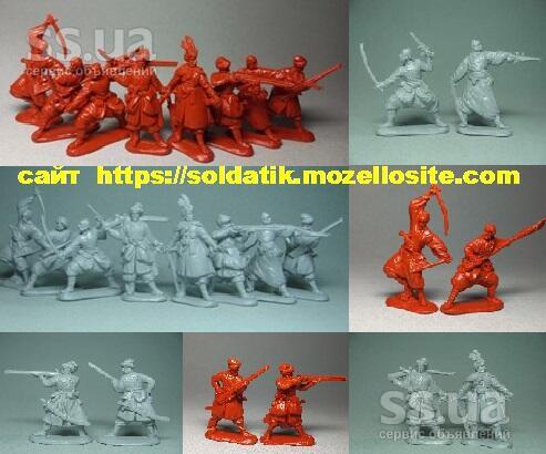 - кримські татари воїни xvii ст, 8 фігурок, 1/32 мм, 54 мм. Матеріал харчовий поліетилен. Колір - сірий, червоний, світло-жовтий.