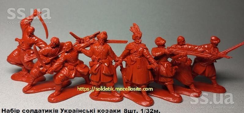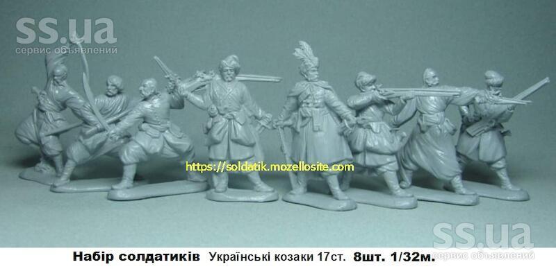 Набір солдатиків українські козаки xvii століття 8 фігурок, 1/32 мм, 54 мм матеріал - харчовий поліетилен. Колір - сірий, червоний.