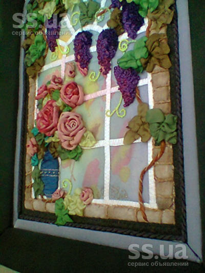 Продам картину. Вышивка из атласа и ткани. Ручная работа, рама также ручной работы. Размер картины - 19х24 см, с рамой - 32х37 см.