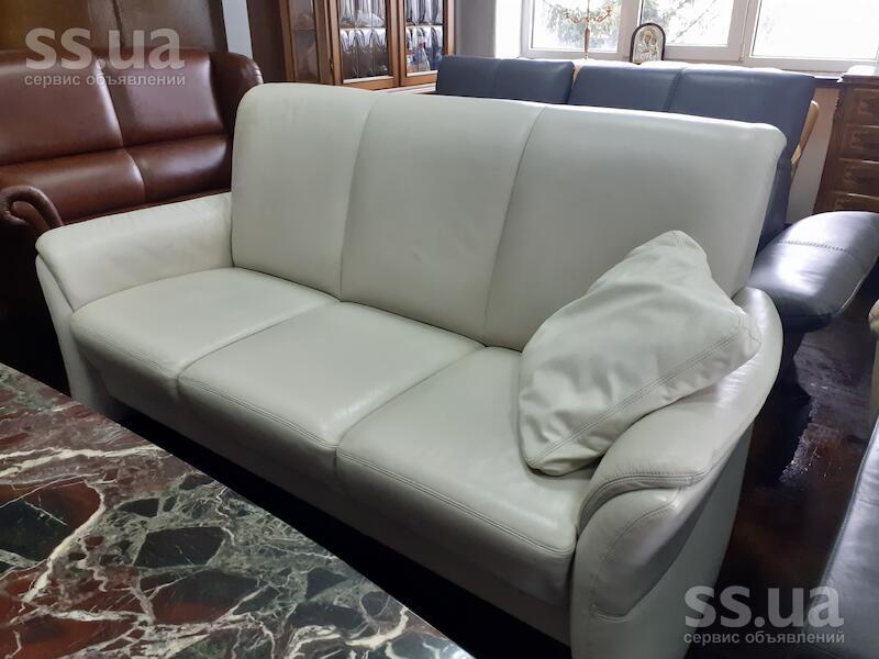 Трійка з Німеччини. Колір слонової кістки. Шкіра в дуже гарному стані, без видимих дефектів. Двойний прошив шкіри. В середині каркас з натурального дерева.
